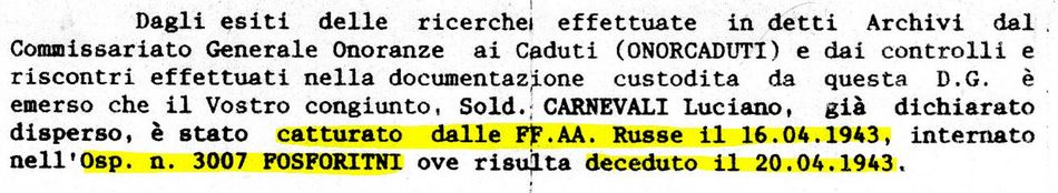 Dal 17 febbraio 1943 Luciano era in mano ai russi, quindi fu sottoposto alla tragiche marce del “davaj” e a disumani trasferimenti in treno. Transitò da uno o più lager dove, in data imprecisata, qualcuno prese la decisione di inviarlo al lager-ospedale n. 3007 di Fosforitnj, ai piedi dei Monti Urali, stesso parallelo di Oslo.